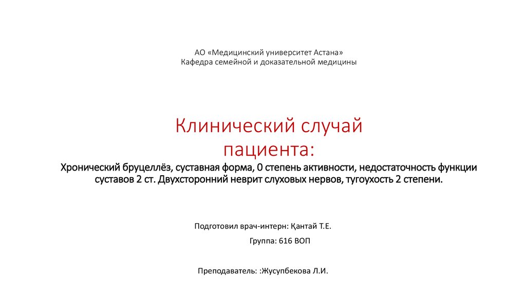 1. АО «Медицинский университет Астана» Кафедра семейной и доказательной медицины Клинический случай пациента: Хронический