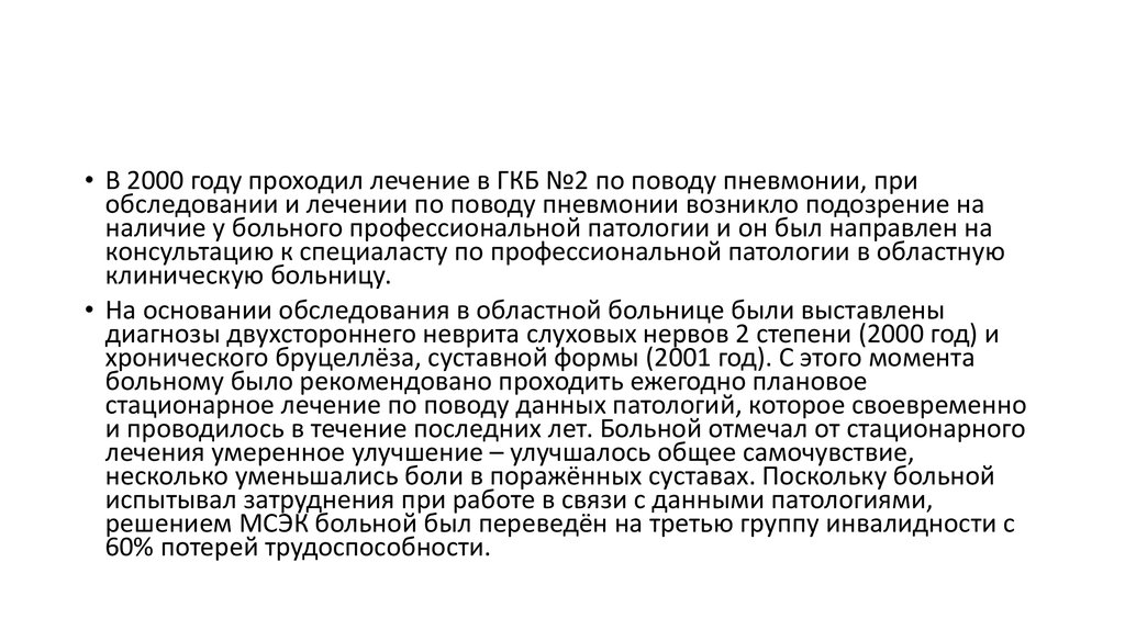 • Когда начинался заболевание и как?• Вы знаете, я себя считаю себя больным т в течение последних 10 лет. Из первых