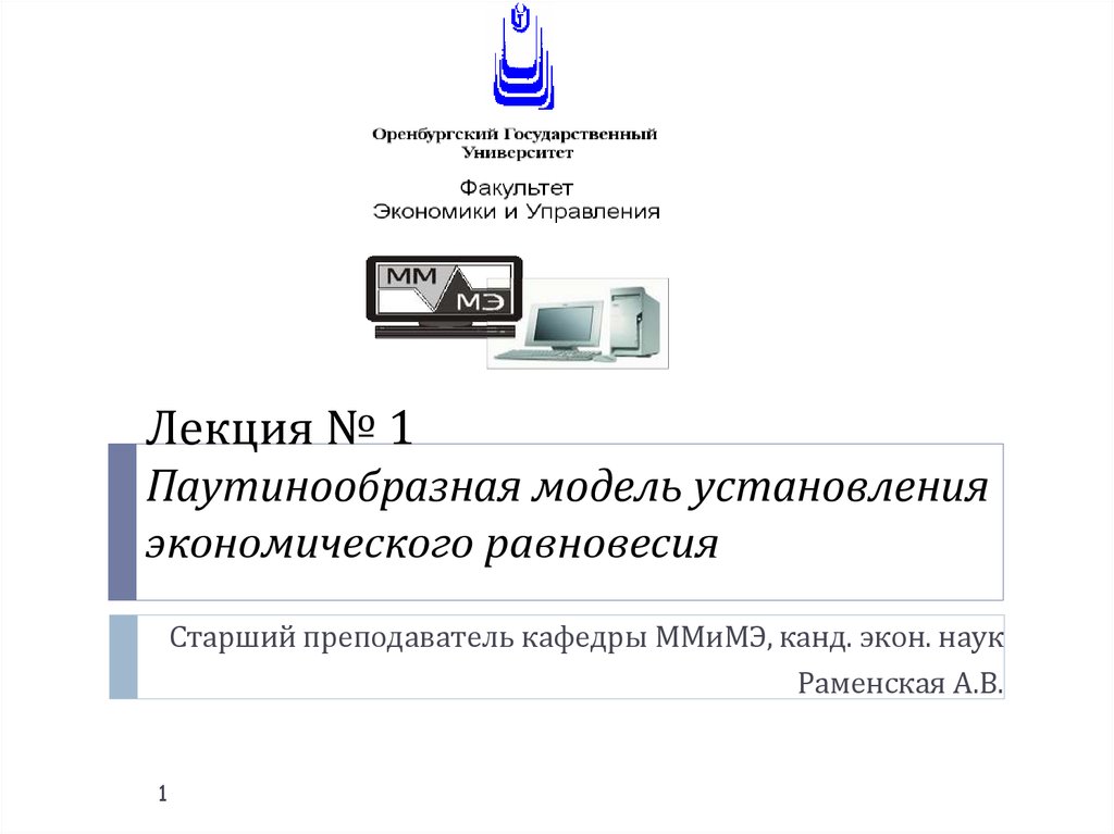 1. Лекция № 1 Паутинообразная модель установления экономического равновесия