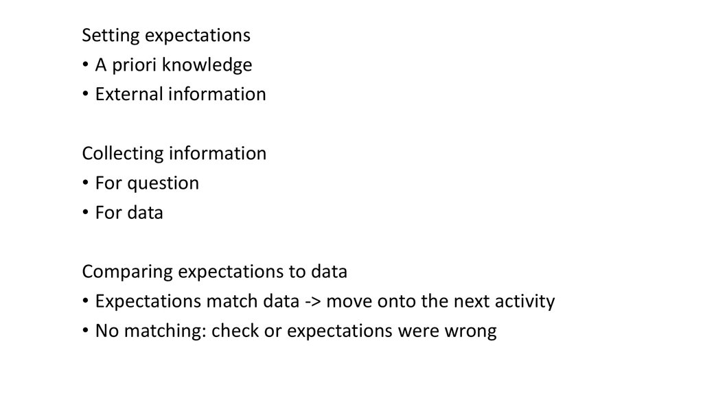 • Expectations match data -> move onto the next activity