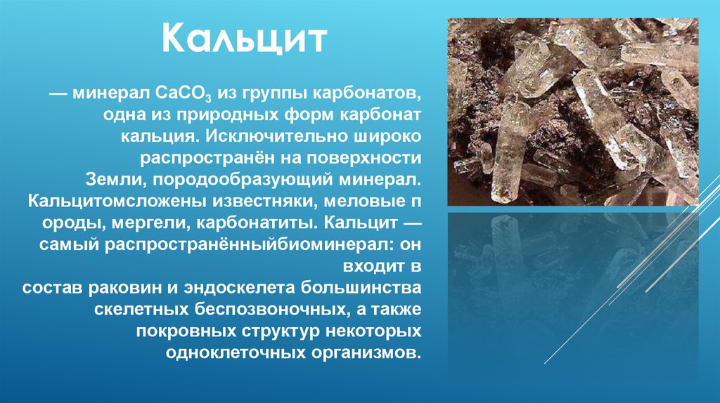 Кальцит— минерал CaCO3 из группы карбонатов,