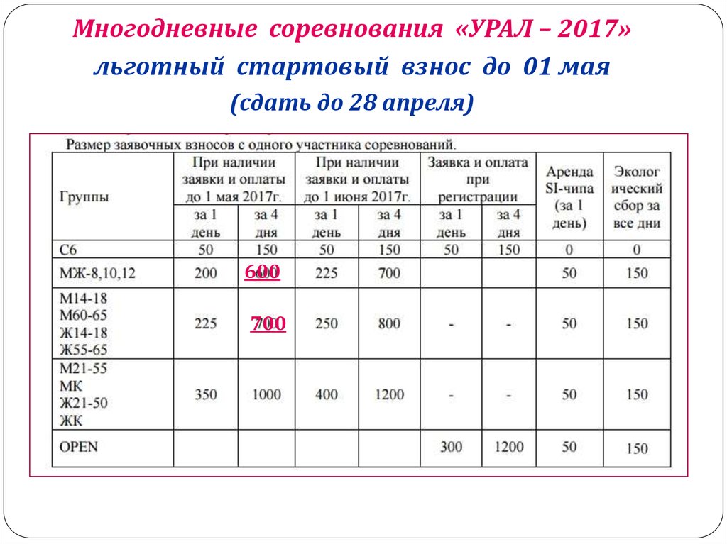 Многодневные соревнования «УРАЛ – 2017»льготный стартовый взнос до 01 мая