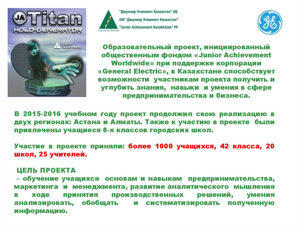 Образовательный проект, инициированныйобщественным фондом «Junior Achievement