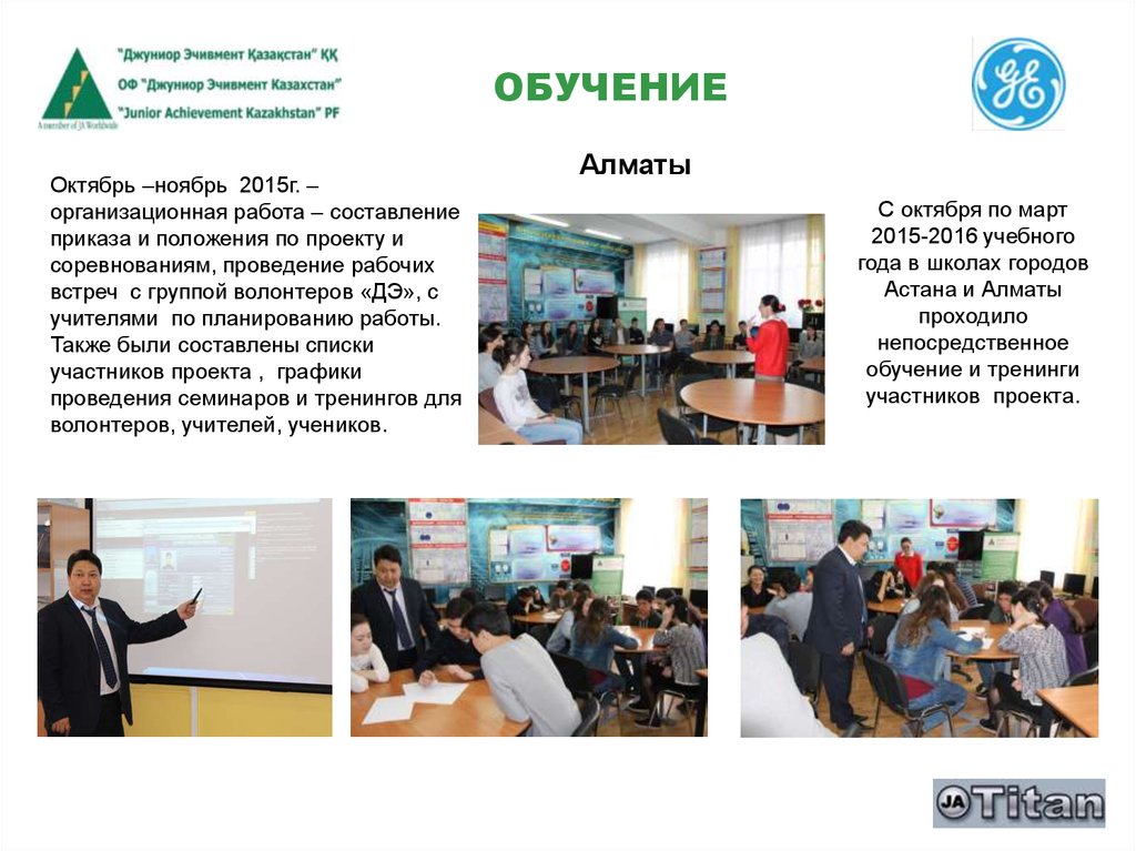двух регионах: Астана и Алматы. Также к участию в проекте были