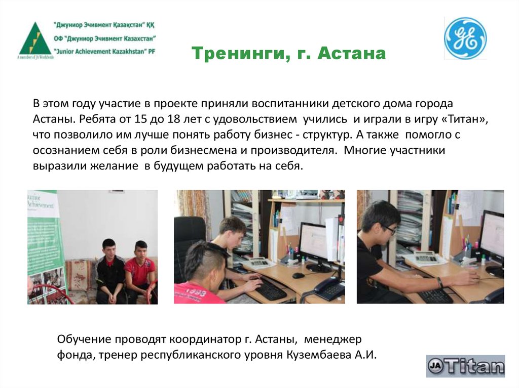 Тренинги, г. АстанаВ этом году участие в проекте приняли воспитанники детского дома города