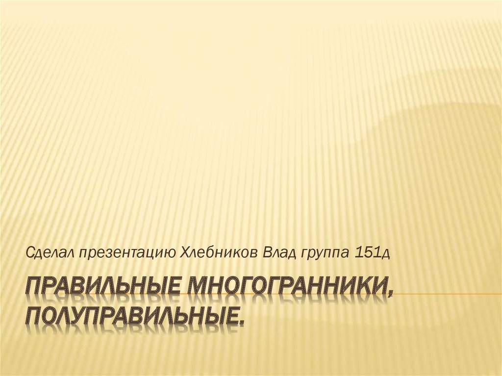 Сделал презентацию Хлебников Влад группа 151дПРАВИЛЬНЫЕ МНОГОГРАННИКИ,