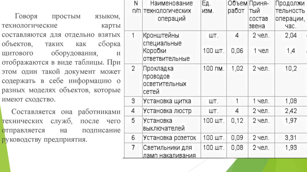 Технологическая карта представляет собой документ, которыйсодержит все необходимые сведения и, соответственно, инструкции для