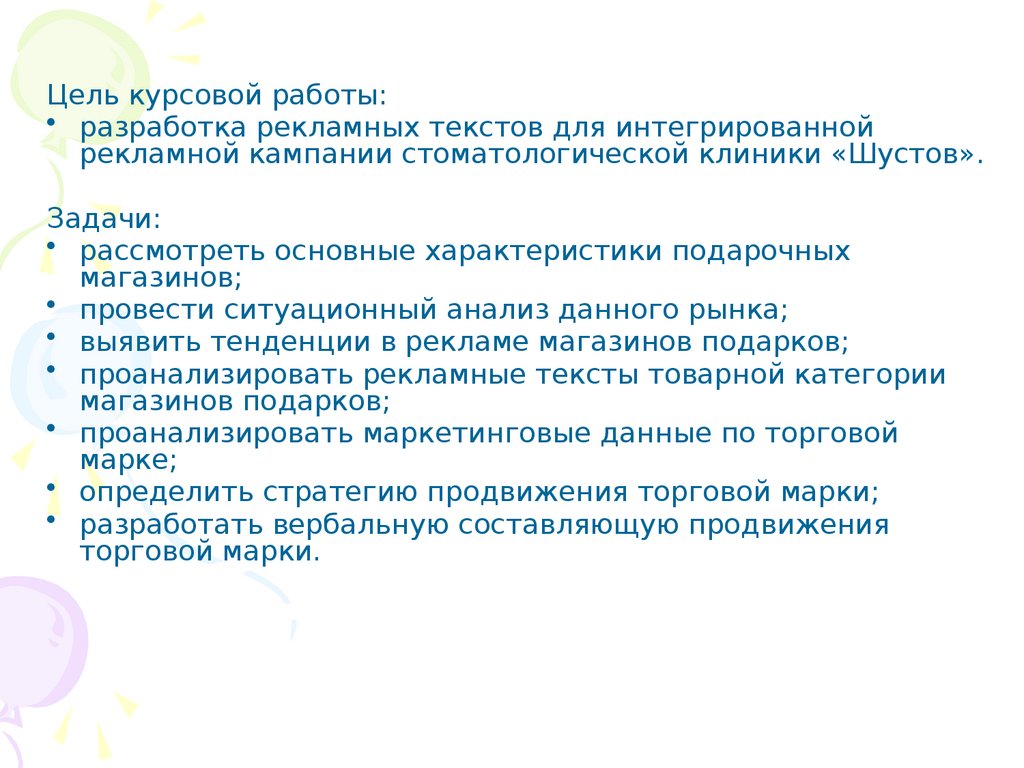 Цель курсовой работы:• разработка рекламных текстов для интегрированной