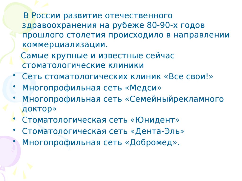 • сети стоматологических клиник;