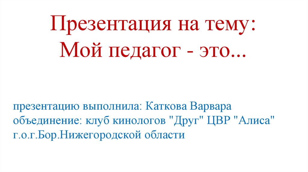 1. Презентация на тему: Мой педагог - это...