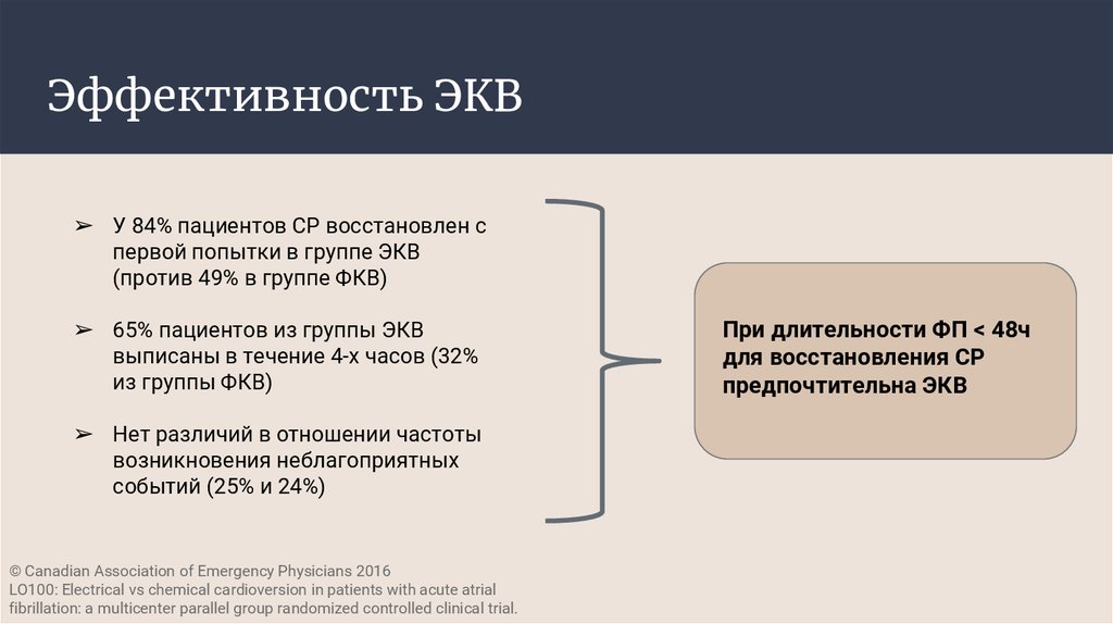 Эффективность ЭКВ➢ У 84% пациентов СР восстановлен с
