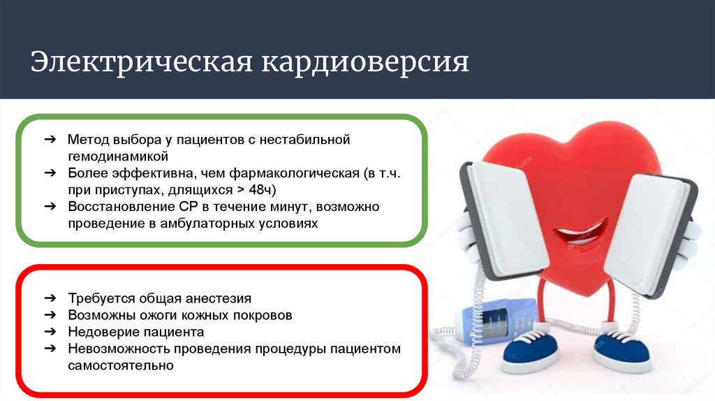 Электрическая кардиоверсия➔ Метод выбора у пациентов с нестабильной