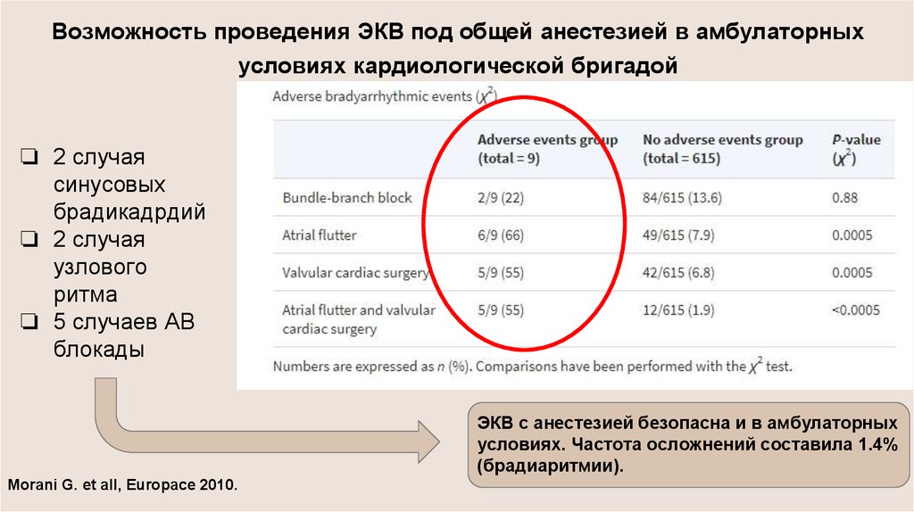 Возможность проведения ЭКВ под общей анестезией в амбулаторныхусловиях кардиологической бригадой