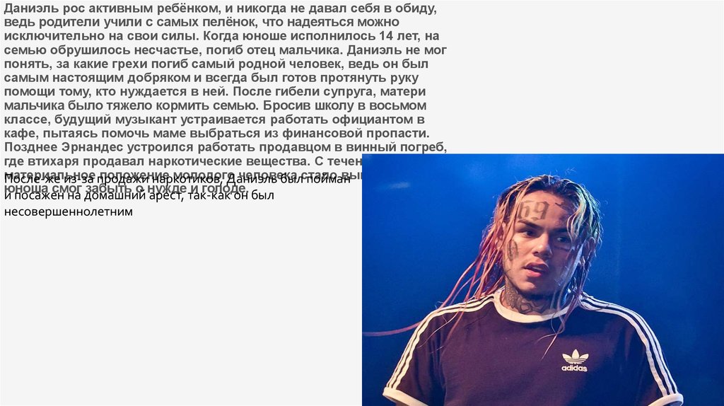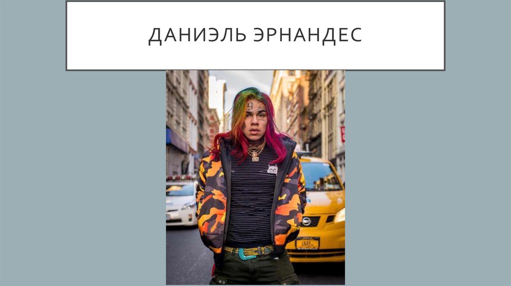 ДАНИЭЛЬ ЭРНАНДЕС2. Даниэль Эрнандес (англ. Daniel Hernandez, 8 мая 1996, Бушуик, Бруклин, США), известен под псевдонимом 6ix9ine (рус. Сикснайн),
