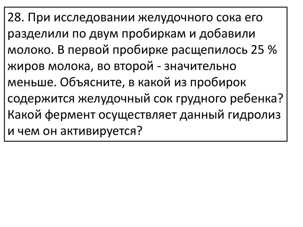 молоко. В первой пробирке расщепилось 25 %