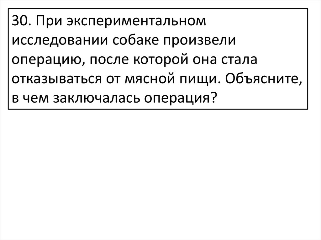 30. При экспериментальномисследовании собаке произвели