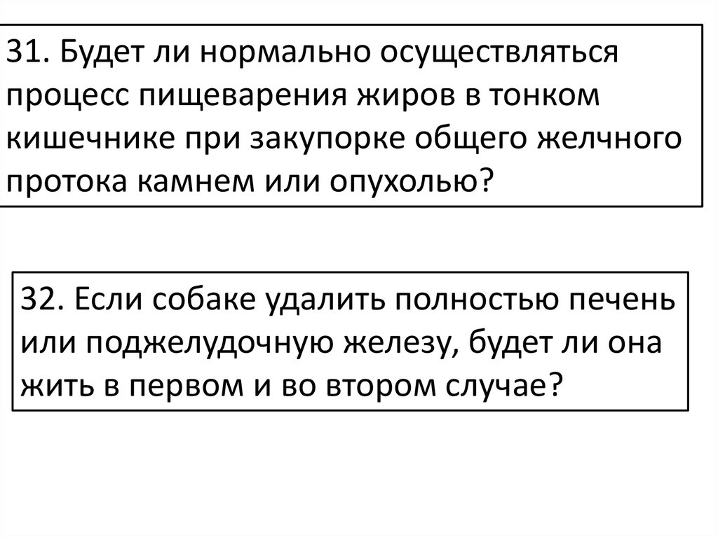 31. Будет ли нормально осуществлятьсяпроцесс пищеварения жиров в тонком