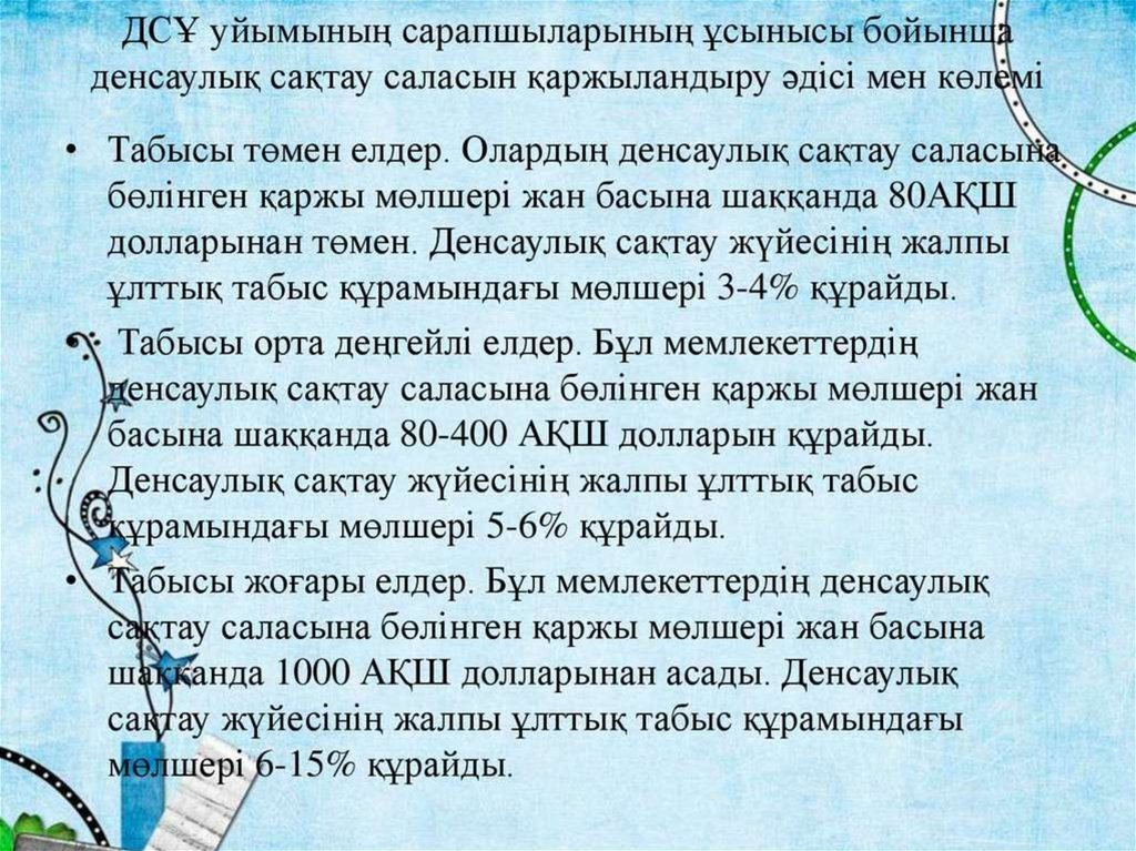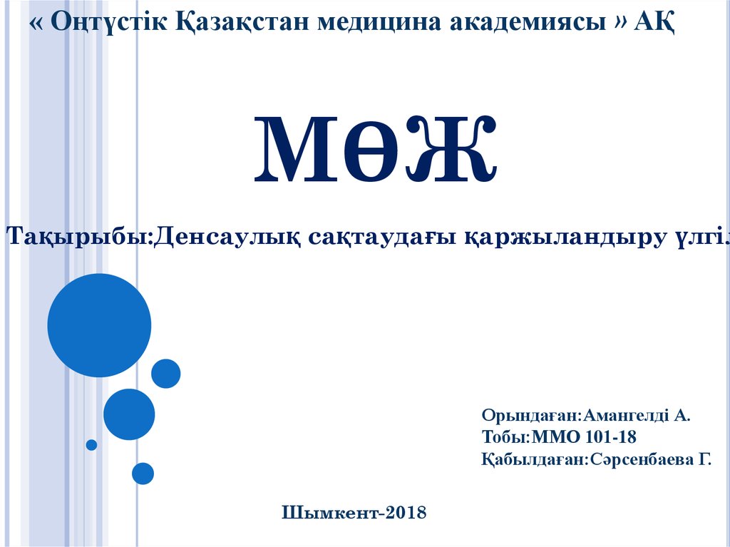 Тақырыбы:Денсаулық сақтаудағы қаржыландыру үлгіл