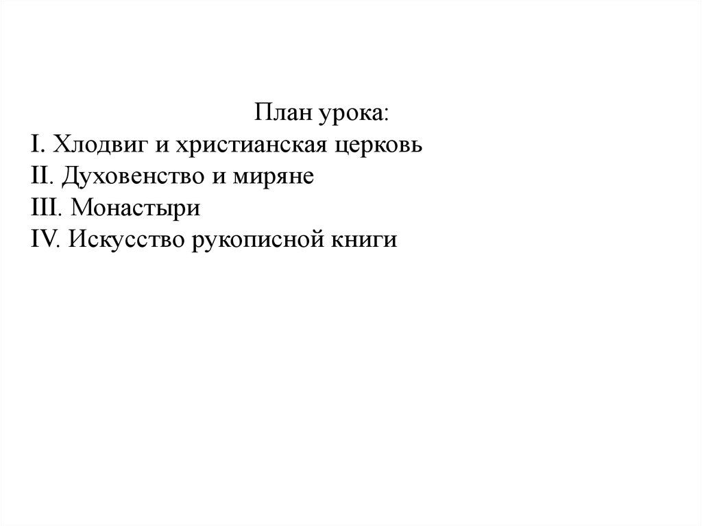 План урока:I. Хлодвиг и христианская церковь