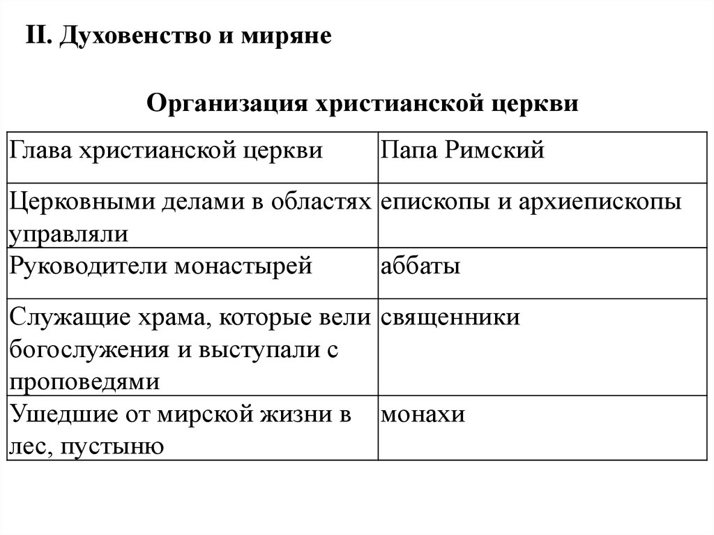 II. Духовенство и мирянеОрганизация христианской церкви
