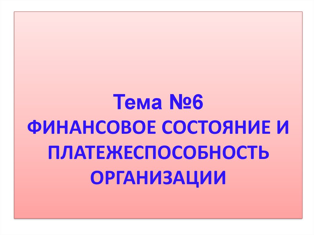 Тема №6ФИНАНСОВОЕ СОСТОЯНИЕ И
