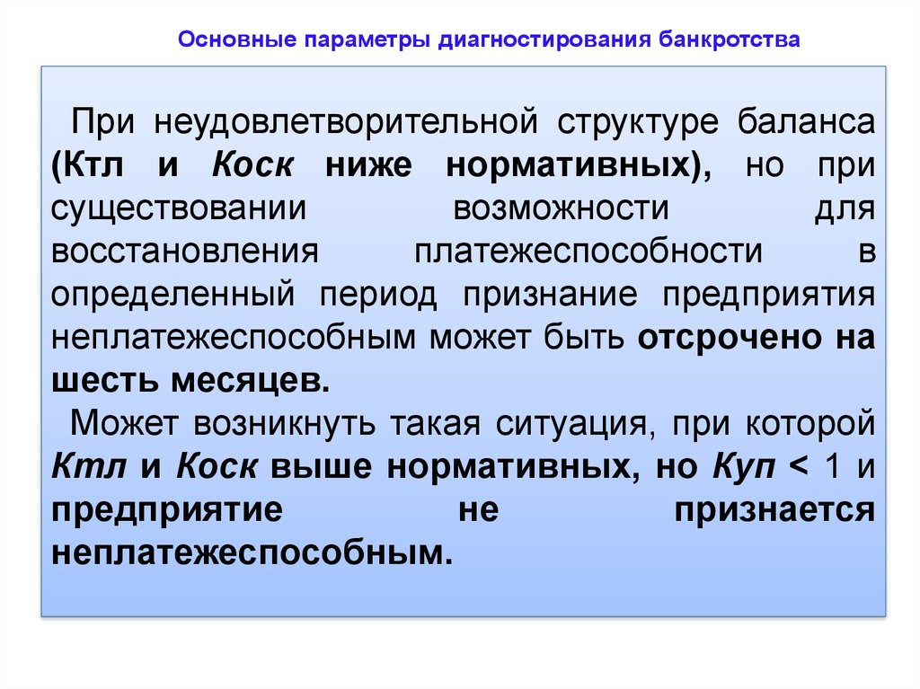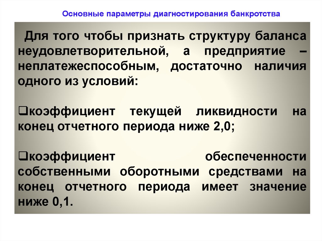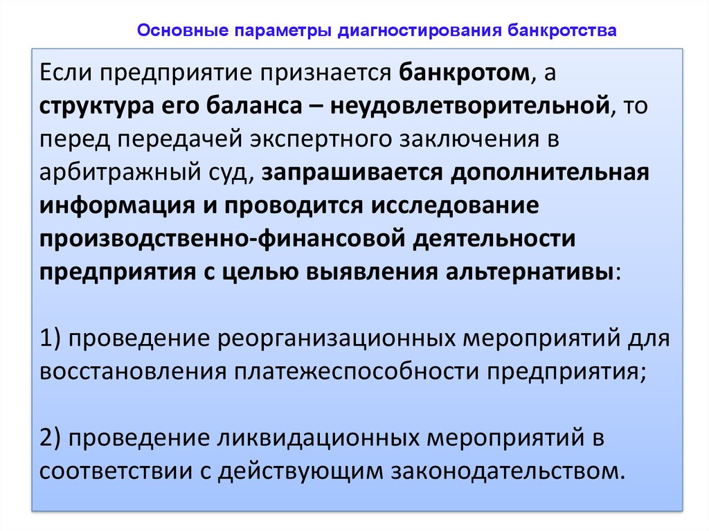 Основные параметры диагностирования банкротстваЕсли предприятие признается банкротом, а