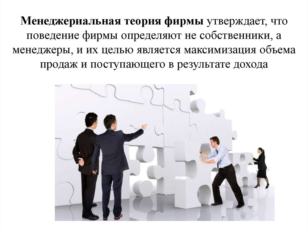 Менеджериальная теория фирмы утверждает, чтоповедение фирмы определяют не собственники, а
