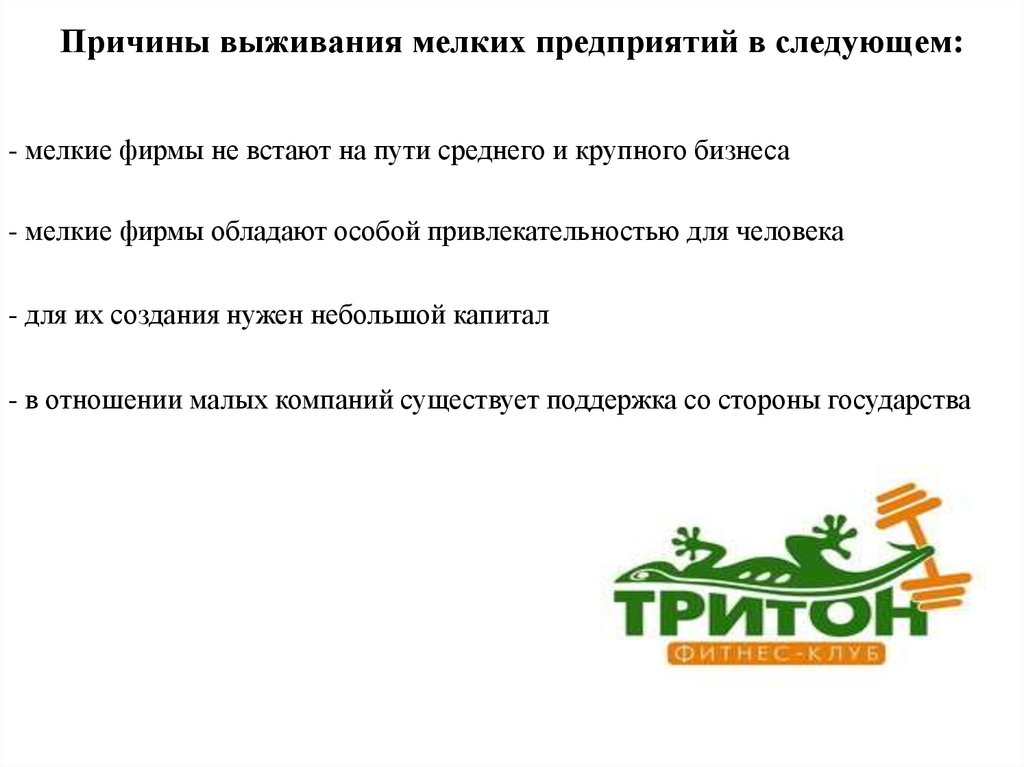 Причины выживания мелких предприятий в следующем:- мелкие фирмы не встают на пути среднего и крупного бизнеса