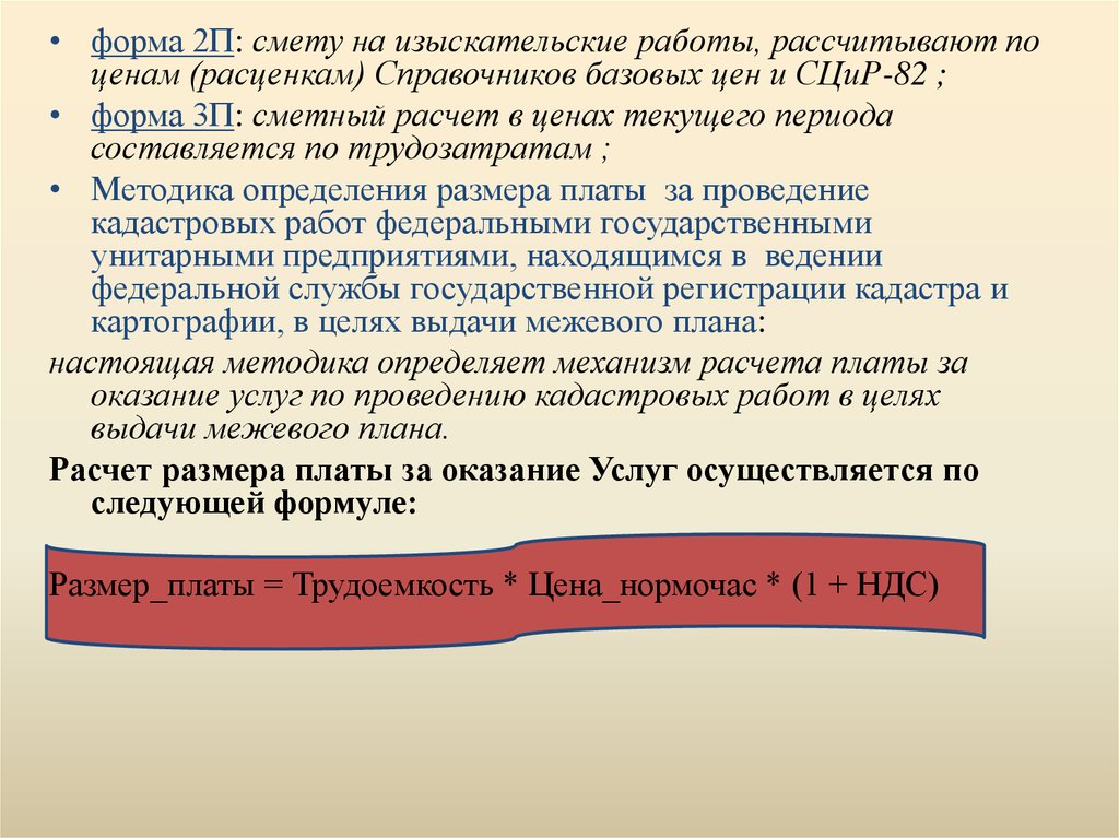 • Методика определения размера платы за проведение
