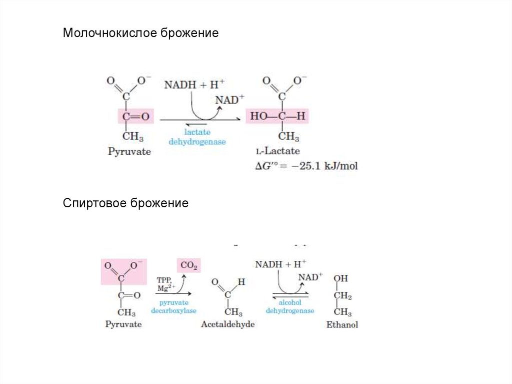 Молочнокислое брожениеСпиртовое брожение