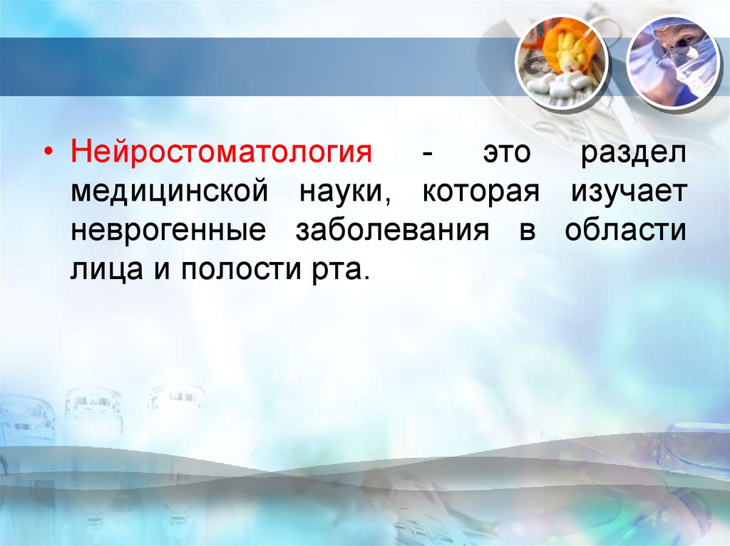 • Нейростоматология - это разделмедицинской науки, которая изучает