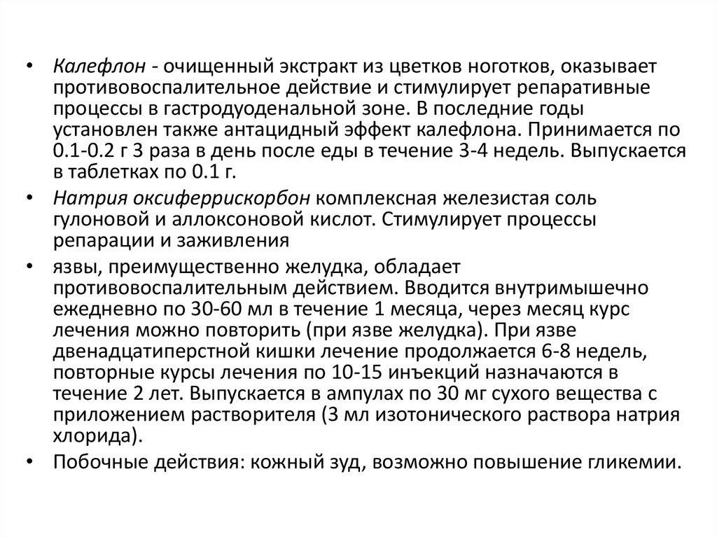 • Калефлон - очищенный экстракт из цветков ноготков, оказываетпротивовоспалительное действие и стимулирует репаративные