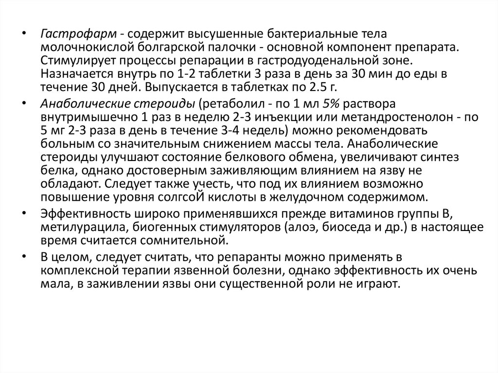 • Гастрофарм - содержит высушенные бактериальные теламолочнокислой болгарской палочки - основной компонент препарата.