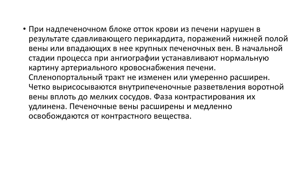 • При надпеченочном блоке отток крови из печени нарушен врезультате сдавливающего перикардита, поражений нижней полой
