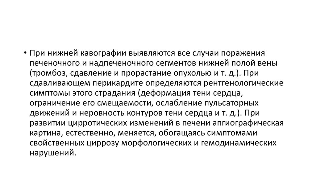 • При нижней кавографии выявляются все случаи пораженияпеченочного и надпеченочного сегментов нижней полой вены