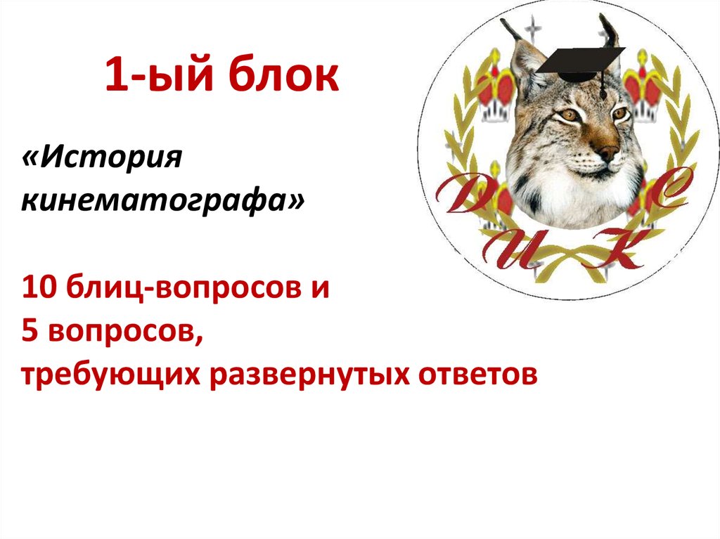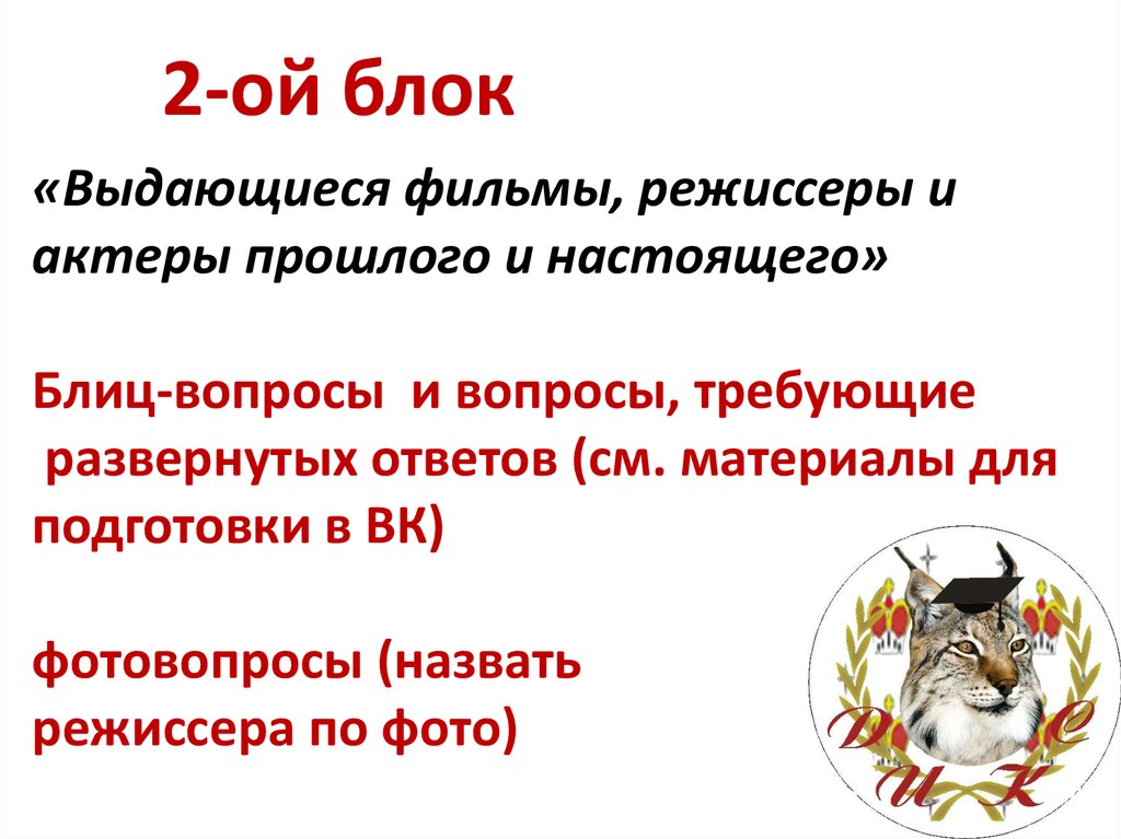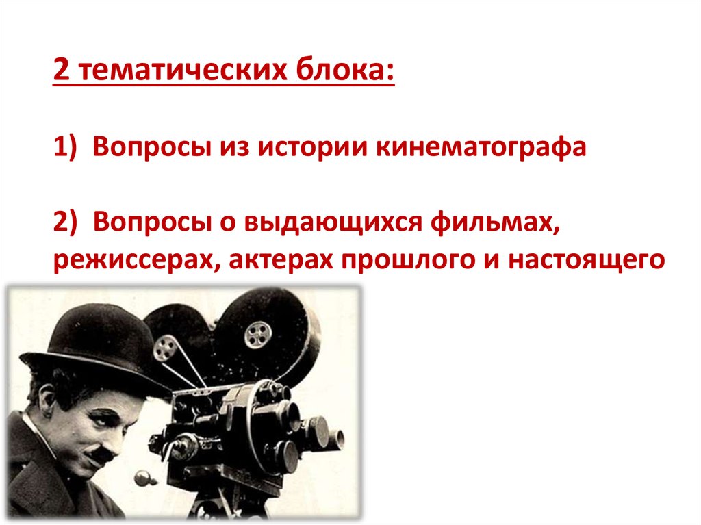 2 тематических блока:1) Вопросы из истории кинематографа