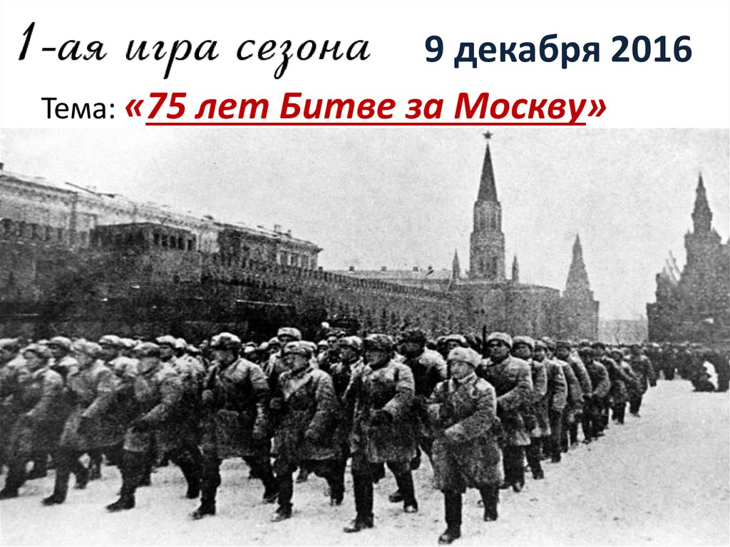 9 декабря 2016Тема: «75 лет Битве за Москву»