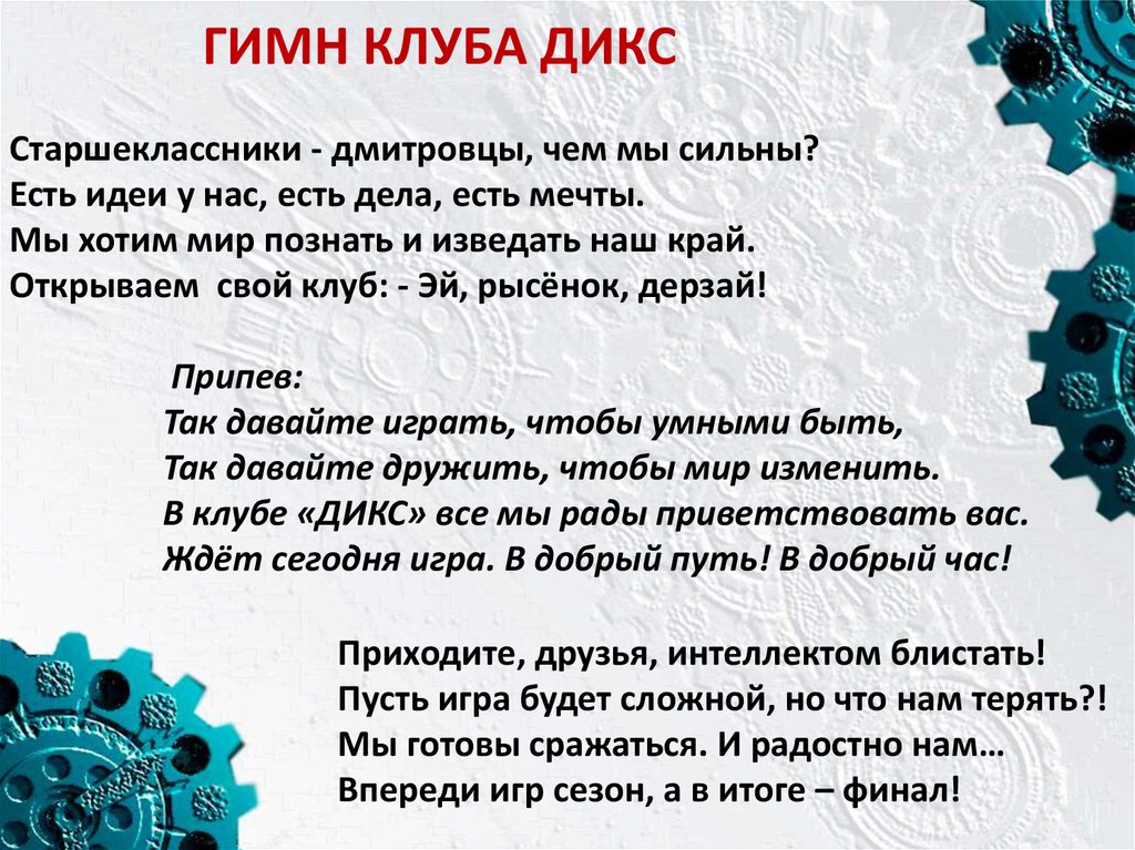 ГИМН КЛУБА ДИКССтаршеклассники - дмитровцы, чем мы сильны?