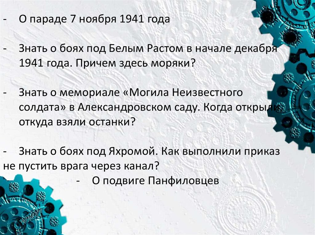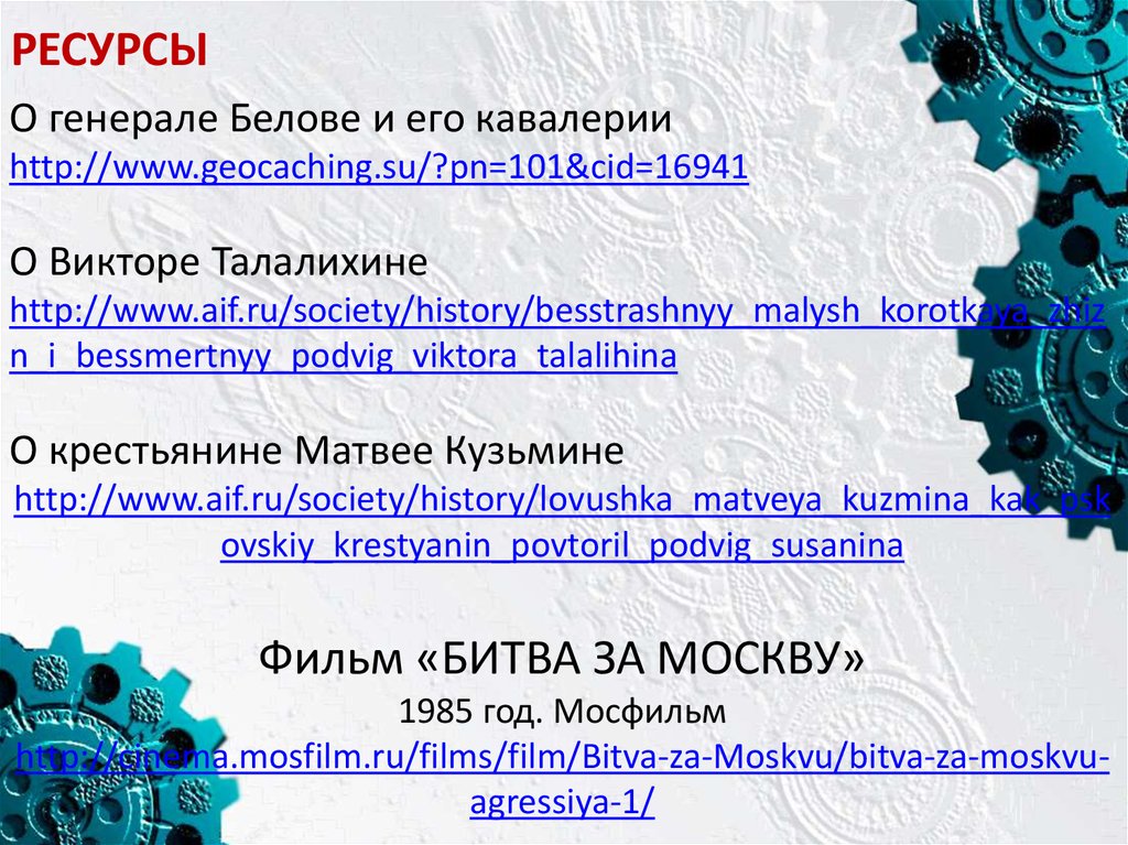 - Знать подвиги людей, на кого есть ссылки в