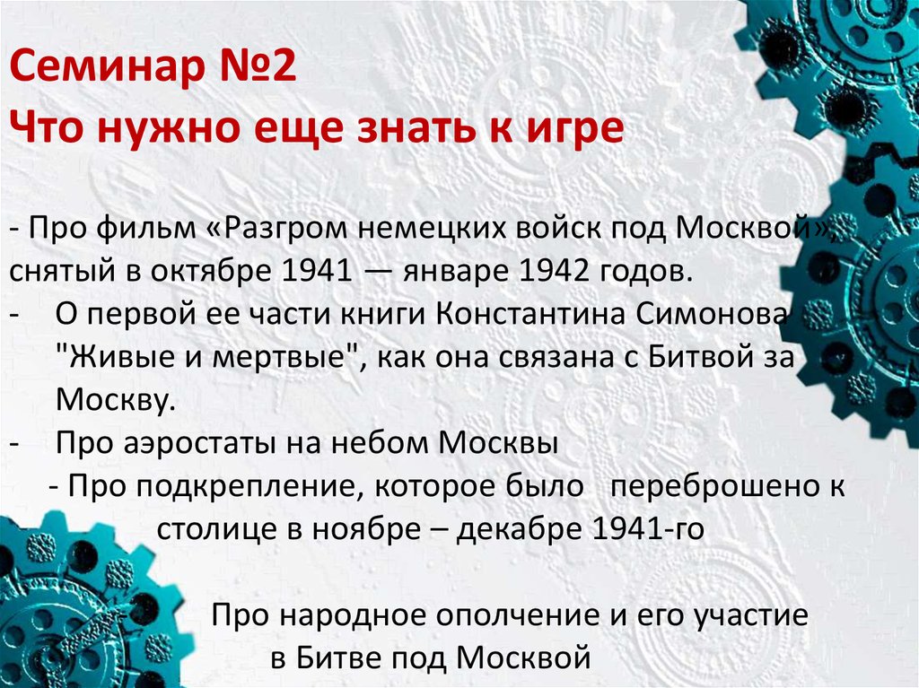 Семинар №2Что нужно еще знать к игре