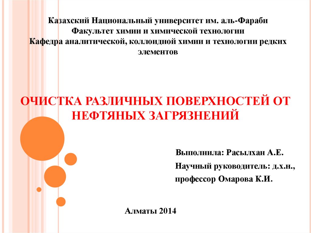 Казахский Национальный университет им. аль-ФарабиФакультет химии и химической технологии