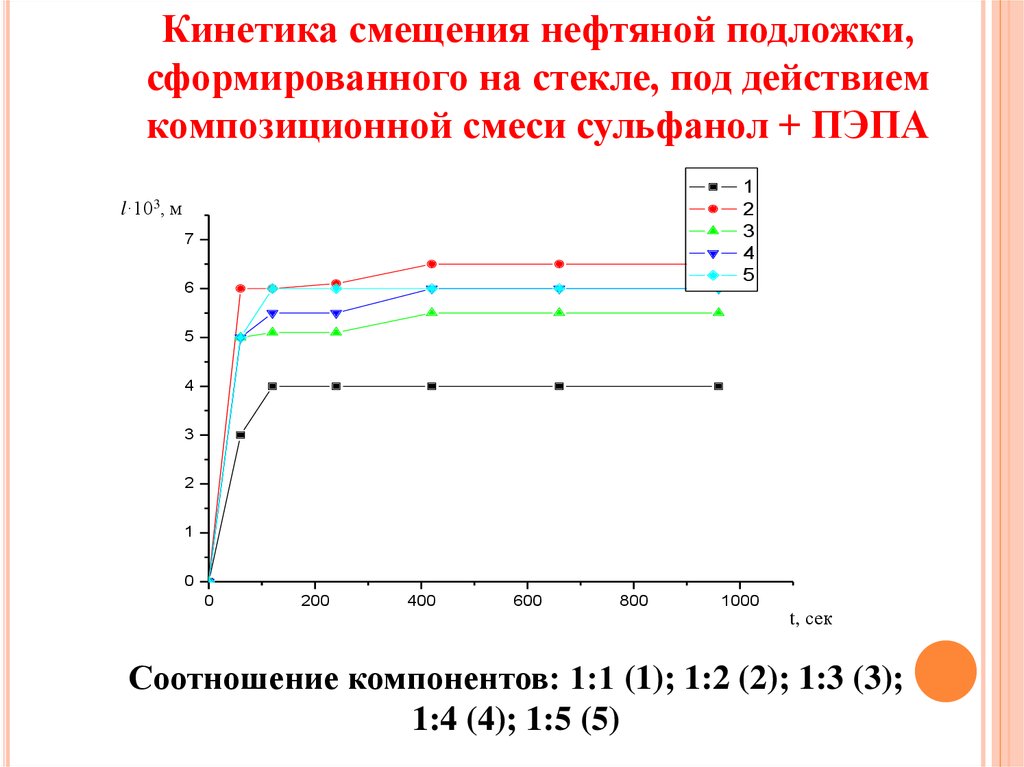 7. Кинетика смещения нефтяного слоя под действием водных растворов индивидуальных компонентов