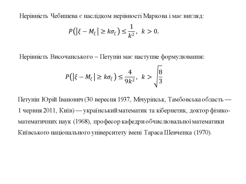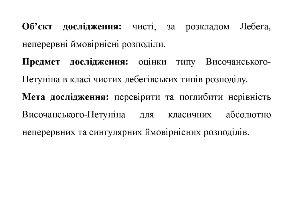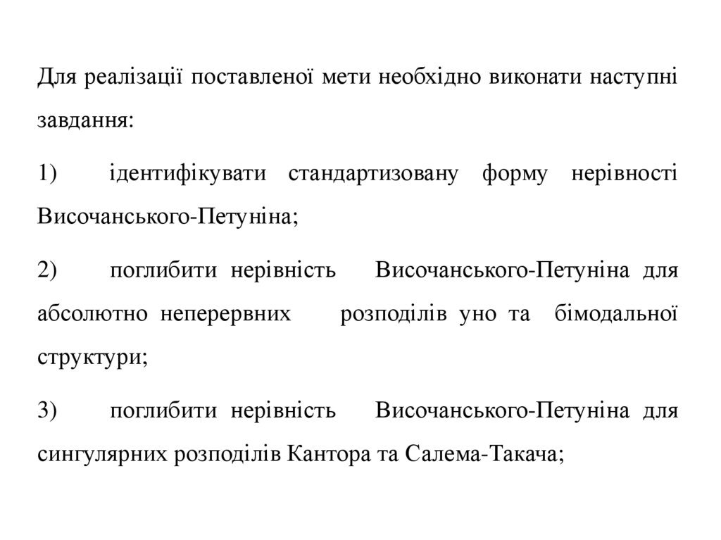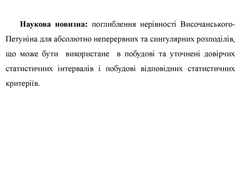 Наукова новизна: поглиблення нерівності Височанського-Петуніна для абсолютно неперервних та сингулярних розподілів,