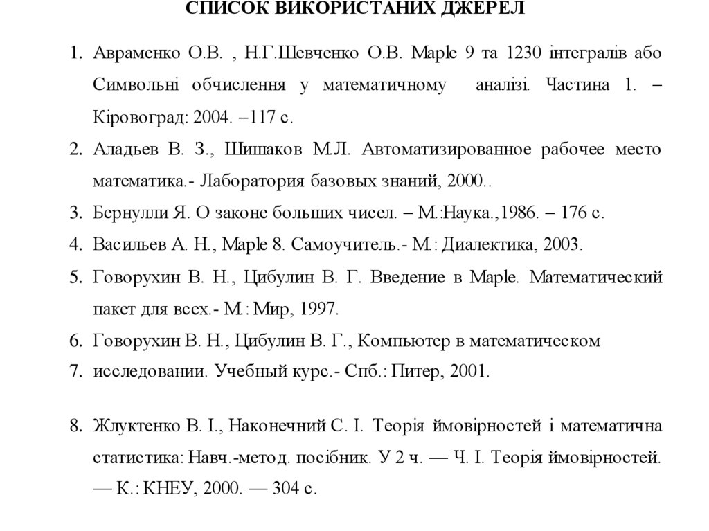 СПИСОК ВИКОРИСТАНИХ ДЖЕРЕЛ