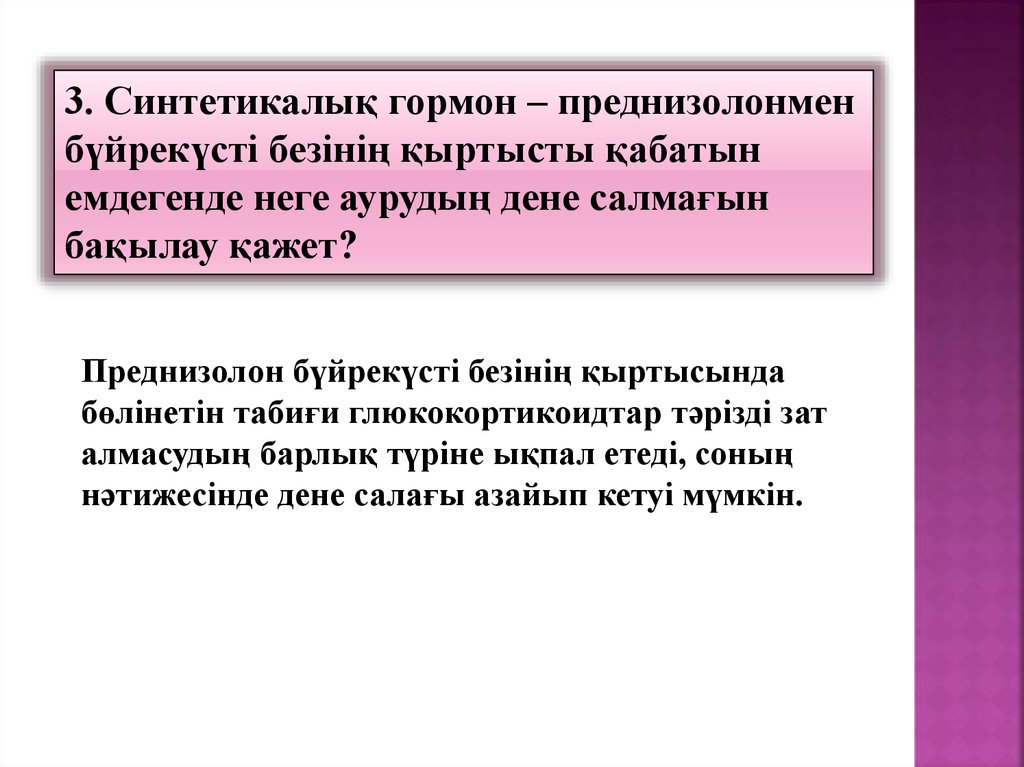 3. Синтетикалық гормон – преднизолонменбүйрекүсті безінің қыртысты қабатын