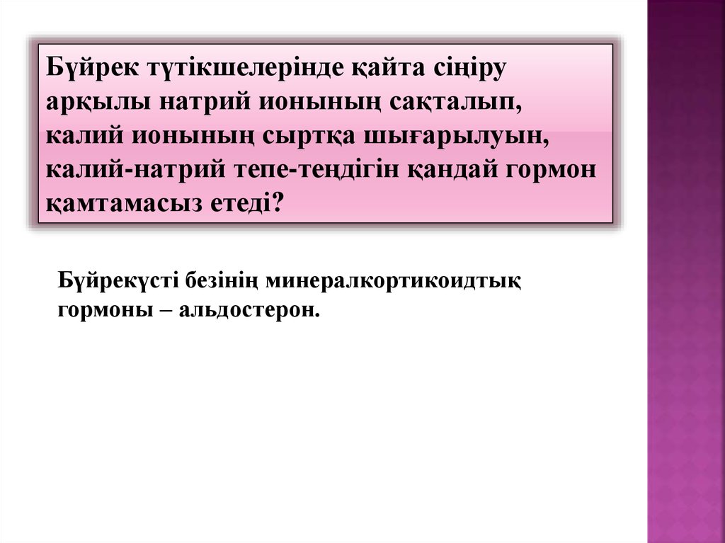Бүйрек түтікшелерінде қайта сіңіруарқылы натрий ионының сақталып,