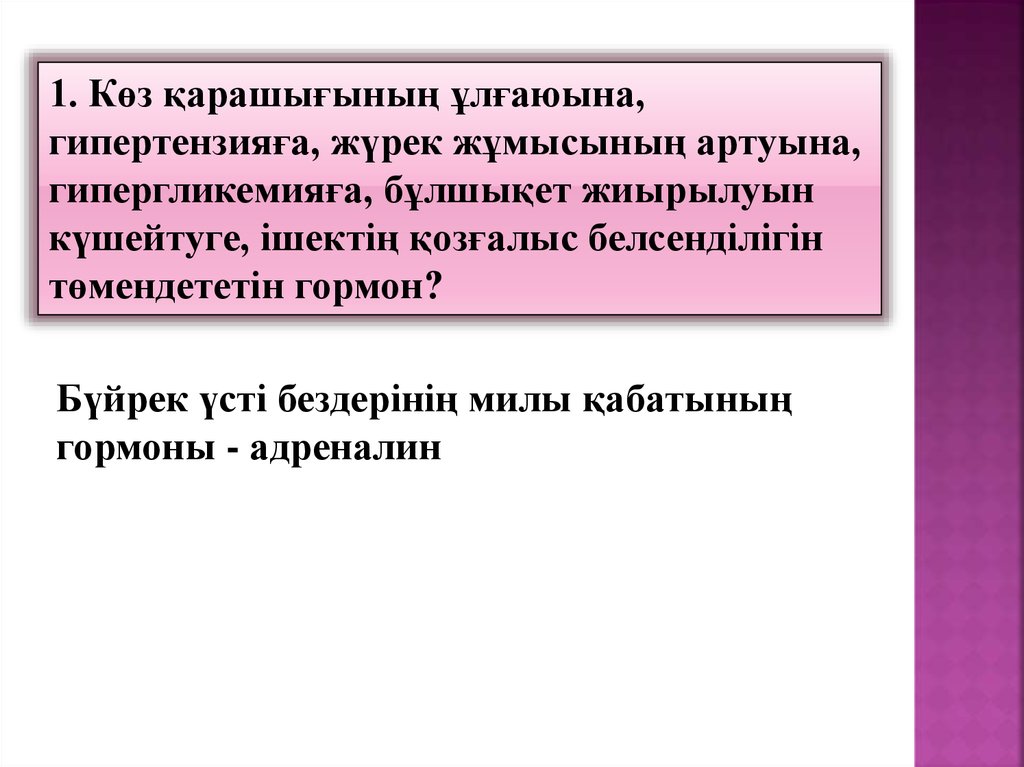 1. Көз қарашығының ұлғаюына,гипертензияға, жүрек жұмысының артуына,