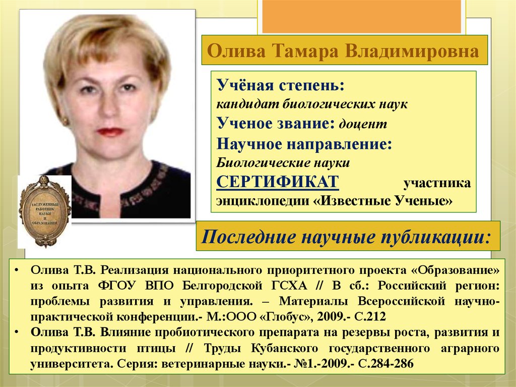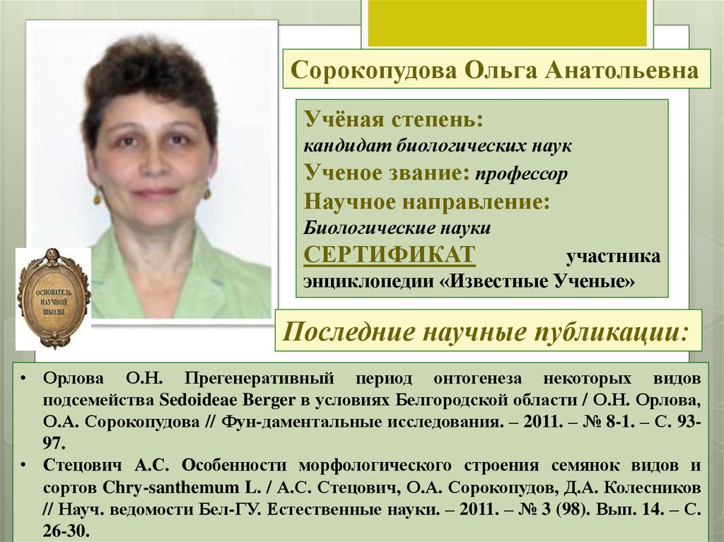 Сорокопудова Ольга АнатольевнаУчёная степень: