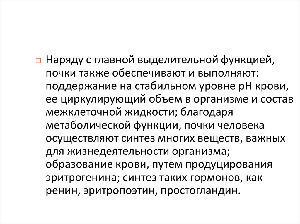 Наряду с главной выделительной функцией,почки также обеспечивают и выполняют:
