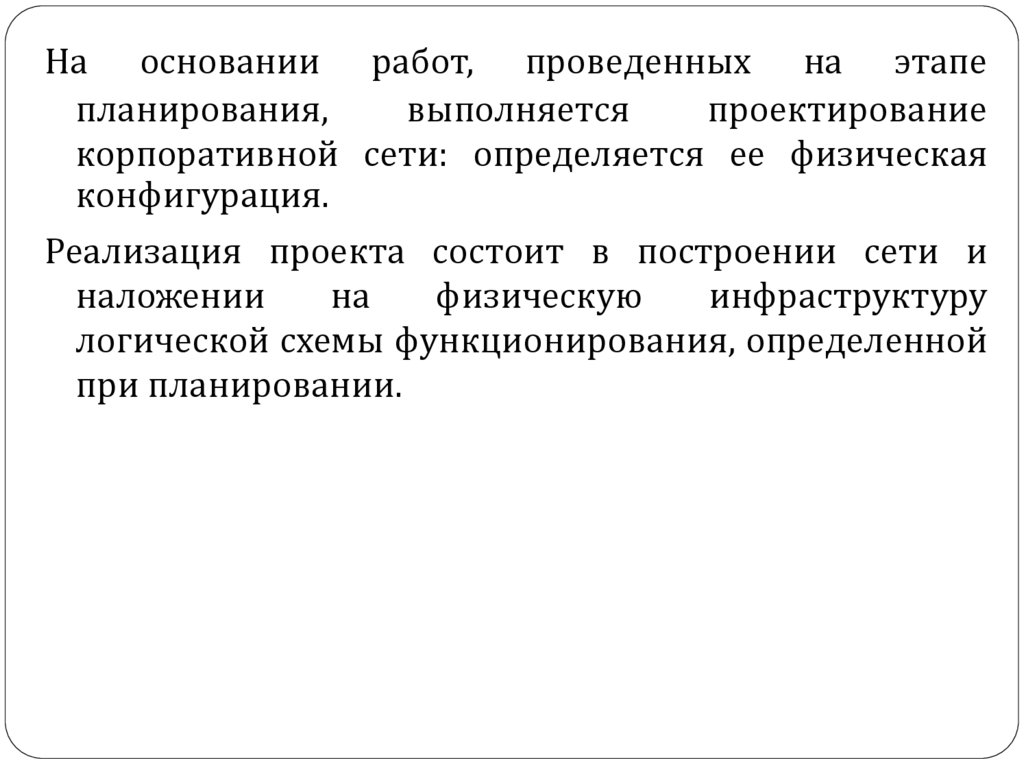 Создание корпоративной сети (или ее модернизация)начинается с этапа планирования, на котором